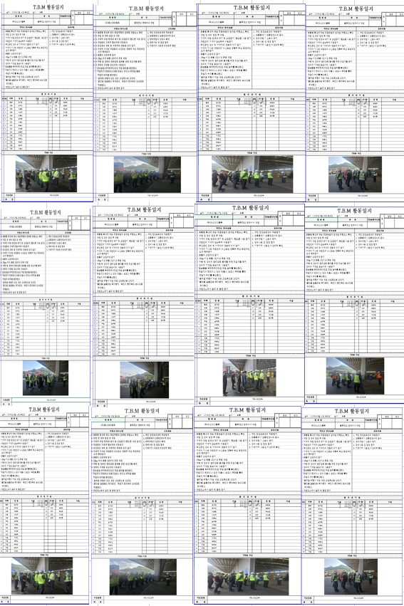 매일 아침 TBM 활동을 통하여 사내 직원 안전교육 및 사고 예방 교육을 실시하고 있습니다.