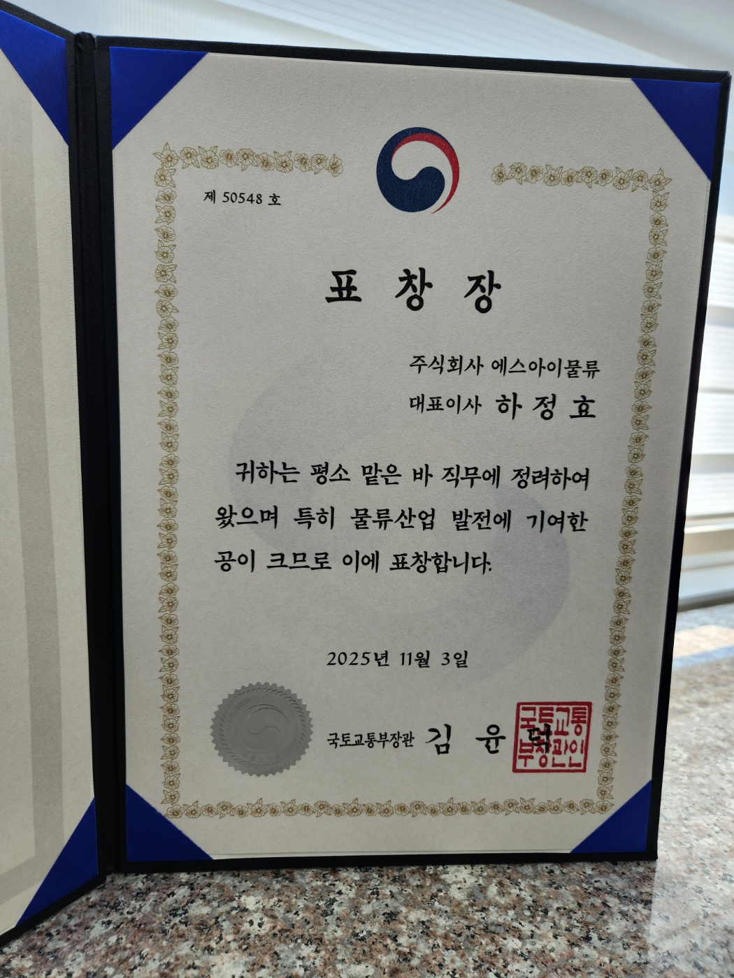 에스아이물류가 2025년 한국물류대상 장관표창을 수상하였습니다.